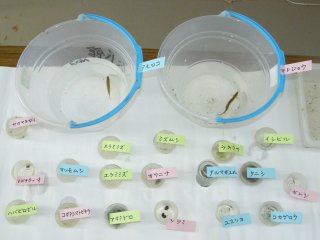 シジミ、カワニナ、マルタニシ、サカマキガイ