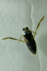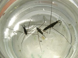 マツモムシ、ミズムシ、チビミズムシ、ヒメガムシ、アメンボ、シオカラトンボのヤゴ、コガタシマトビケラ、コカゲロウ、