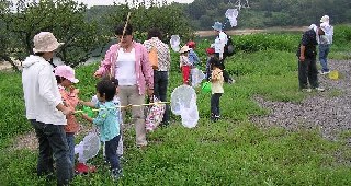 子育てグル−プ、HUG(はぐ)の皆さんが佐布里池周辺の草むらで虫さんを捕まえ楽しく遊びました。