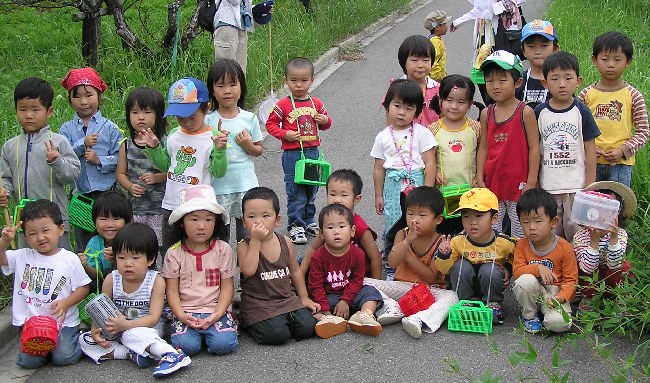 グル−プの目的は子供たちに「あそぶ」「つくる」「かんじる」「みる」「きく」「ふれる」・・・・など五感を使って子供達のより良い生長を援助しています。 これは、自然観察の基本でもあることから今後も知多自然観察会として協力をしたいところです。今回は、虫の名前をおぼえることより虫さんにふれることをめざしました。