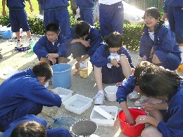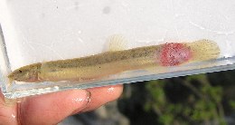 【左】ハゼに似ていますが、コイの仲間のカマツカです。砂のある川に住んでいます。