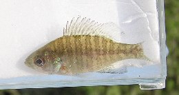 【右】外来種のブルーギルです。生態系に影響があると心配されています。