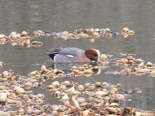 【左】馬池にヒドリガモがたくさん来ていました。