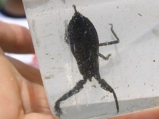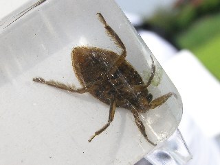 【中】コオイムシ。お父さんが背中に赤ちゃんを背負います。