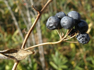 【左】シオデ。サルトリイバラに似ていますが果実が黒、棘はありません。