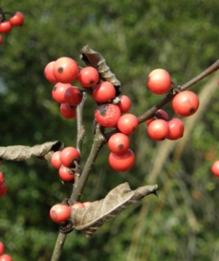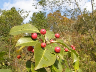【右】ウメモドキの雌株。知多にもたくさん自生していましたが造成・盗掘などにより少なくなりました。