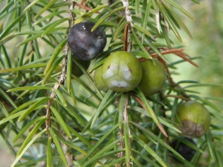 【左】ネズ。青い実を焼酎に入れるとジンの香りになります。