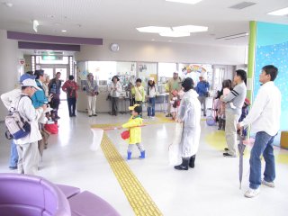 【左】新メンバーが集まってきました。 【右】カラフルな雨合羽を着ています。