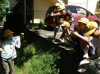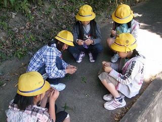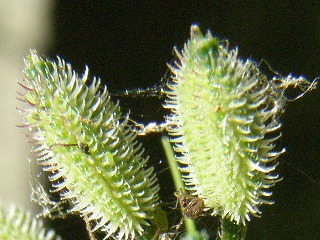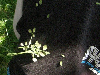 【左】ひっつきむしを投げています。  【右】ヤブジラミの種子