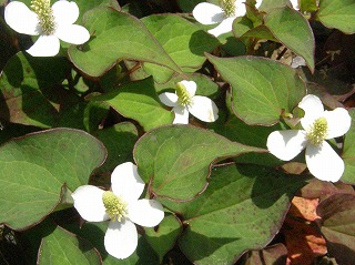 【左】ドクダミ。白いのは花びらではなく、胞(ほう)です。