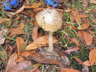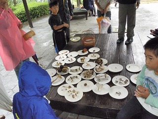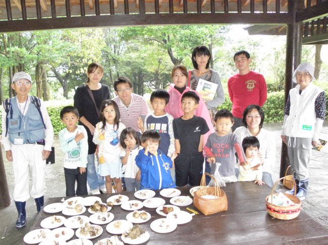 朝から雨模様のため 地域文化センターに集合し 2階の講座室で降幡さんのキノコの説明がありました。雨も小降りになったので 公園に移動しました。キンモクセイの香りを楽しみながら キノコの観察をしました。公園内は芝生がきれいに刈られいつも見かけるキノコはなく東屋のある茂みで幼い子供さんがつぎつぎとキノコを見つけ歓声をあげてました。採集したキノコの説明があり解散しました。(記・高橋)