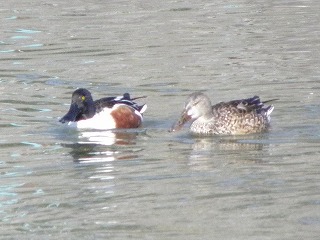【左】ハシビロガモのぐるぐる周りの採餌です。 【中】カルガモ 【右】カワラヒワ