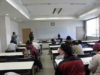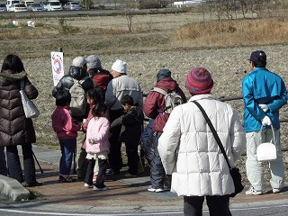 【左】冬鳥の予備知識をお話しています。 【右】馬池でたくさんカモを見ました。