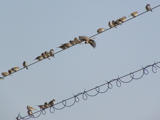 【左】ドバト(外来) 【中】ケリ 【右】スズメ