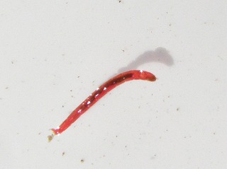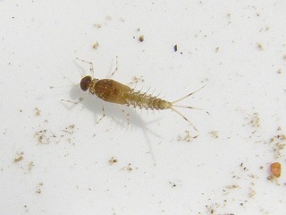 【左】コガタカゲロウ 【中】ユスリカの幼虫(アカムシとして釣りの餌にします) 【右】ハグロトンボの幼虫