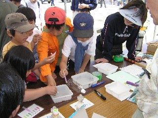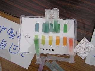 【左】試薬で水質を調べています。