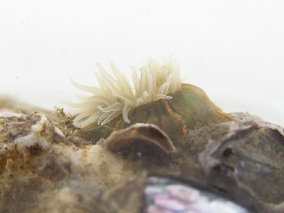 【中】タテジマイソギンチャク。河口の塩分の少ないところまで生息しています。