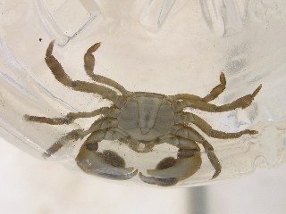 【右】ケフサイソガニは汚れに強く、随分上流まで住んでいます。(写真はお父さんガニ)