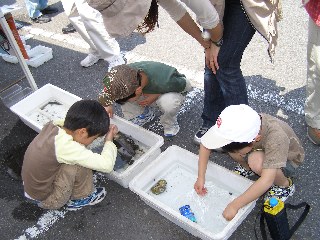 【左】市長さんも生き物を見学されました。