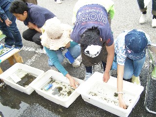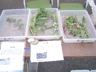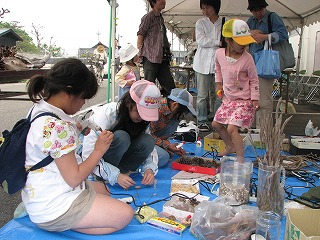 ・展示…採集した生きもの(種類ごと容器にいれて),写真(魚,貝,カニ,鳥,プランクトンなど),海辺の植物(ハマダイコンなど)