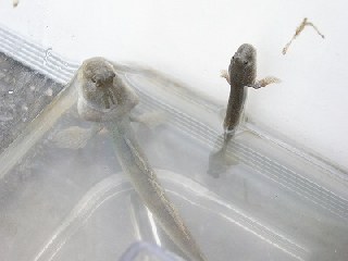 【左】トビハゼの飼育ケース(特別展示:半田運河にはいません)