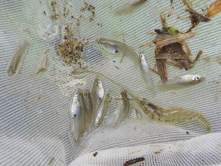 【左】モツゴ 【中】カダヤシ(外来) 【右】ウナギ