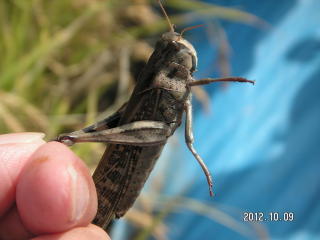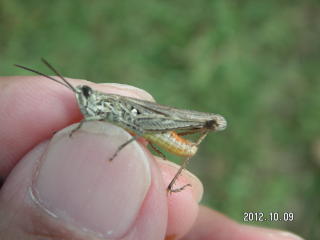 【左】キチョウ(花壇付近) 【中】ツチイナゴ幼虫(花壇付近) 【右】ヒナバッタ(校庭西の草むら)