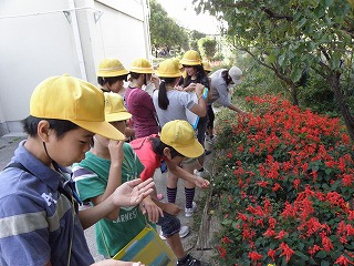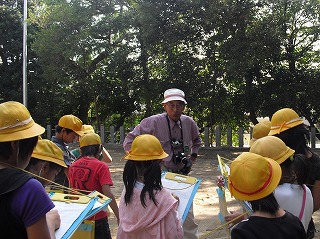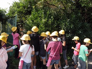森岡小学校5年生が6つのテ−マに分かれて東浦町森岡小学校周辺を観察しました。良い日になり、気持ちよく元気に野外観察を行う事が出来ました。 観察した内容は次の通りです。