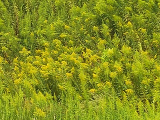 【左】オニバスの花芽と種 【中】シャジクソウの仲間 【右】セイタカアワダチソウ