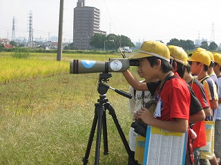 @野鳥コース…… 学校〜村木神社〜岡田川〜学校のコースで野鳥を観察しました。