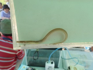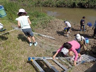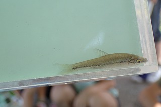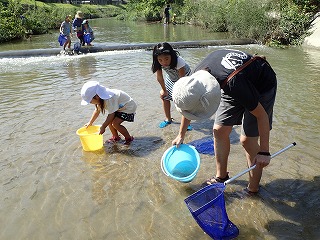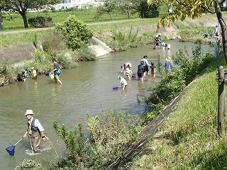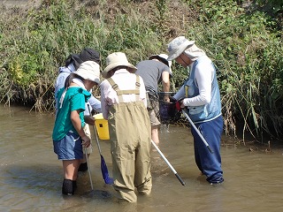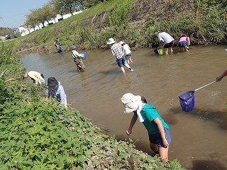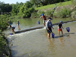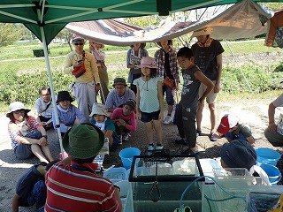 参加者は、グループごとに分かれて川の2箇所で生物採集をおこないました。ニホンスッポンの捕獲もできた。魚やエビなどの名前も知らない生き物を捕まえる楽しさや水とのふれあいを十分満喫できた観察会となった。また、採集後の生物の解説では名前はもちろんのこと、生き物の特徴や外来生物問題など持続可能な開発のための教育についても取り上げ実施しました。(記・水野恭)