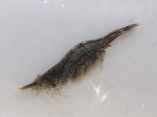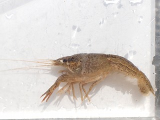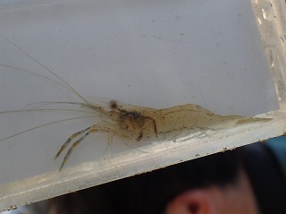 【左】カダヤシ(外来) 【中】テナガエビ 【右】ミゾレヌマエビ