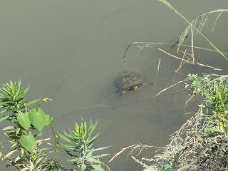 ミシシッピアカミミガメ、ニホンスッポン、ウシガエル(おたまじゃくし)、ヌマガエル、シジミ、イシマキガイ、スズメ、キジバト、ヒガンバナ、ツユクサ、アレチウリ
