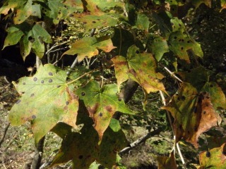 【右】ウリハダカエデの紅葉と果実