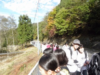 紅葉の季節を迎え、面の木の落葉樹が色づきました。天気も上々で絶好のハイキング日和になりました。面の木の自然を観察しながら元気に井山に向かいました。