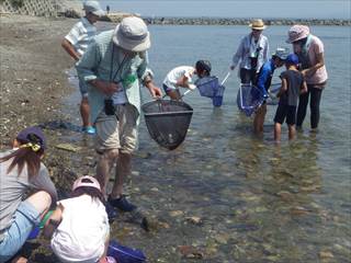 今回は指導員としては観察すべき対象の種類が少なく、若干不満であったが、子どもたちは水辺で保護者と小さなカニや、ヤドカリ、ハゼなどに歓声を上げていたので"良し"としたい。