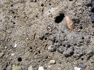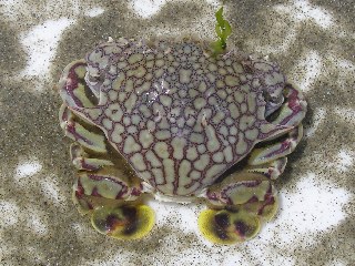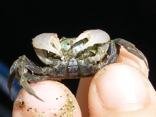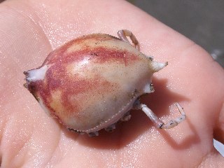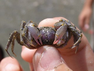 【右】きれいな紫の化粧をしているコメツキガニ。