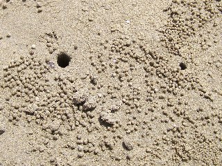 【中】アミメキンセンガニは砂に潜るのも素早いです。左、もぐり始め。右、素早くもぐりました。