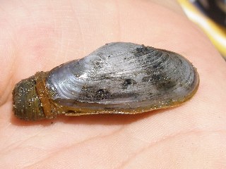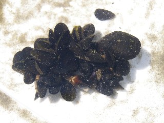 【中】ムラサキイガイ(フランス料理のムールガイ)が磯にたくさん付いていました。
