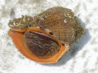 【右】ツメタガイです。アサリなど二枚貝に穴を空けて食べます。