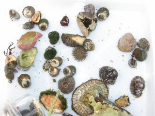 ヒザラガイ、ヒメケハダヒザラガイ、ウスヒザラガイ、ヤスリヒザラガイ、オトメガサ、ヨメガガサ、マツバガイ、ウノアシ、イシダタミ、コシダカガンガラ、スガイ、アラレタマキビ、タマキビ、イボニシ、オオヘビガイ、ムラサキイガイ、ナミマガシワ、マガキ、ウチムラサキ、アサリ、カモメガイ、キクノハナガイ、アメフラシ、クロシタナシウミウシ、