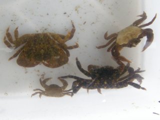 カメノテ、イワフジツボ、クロフジツボ、フナムシ、ワレカラの仲間、ホンヤドカリ、イシガニ、イワガニ、イソガニ、ヒライソガニ
