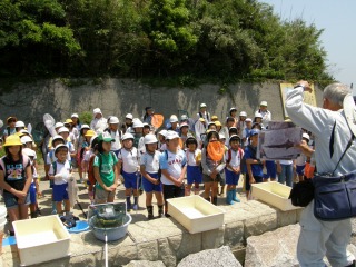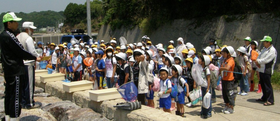 学校のねらいは、身近な自然の海に生活する生き物を観察することにより、地域の自然を学び、自然の大切さを知ること。自然豊な郷土の海を愛し大切な海を守って行く心豊な児童を育てる目的で実施されました。