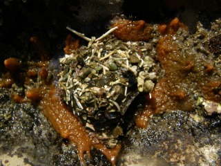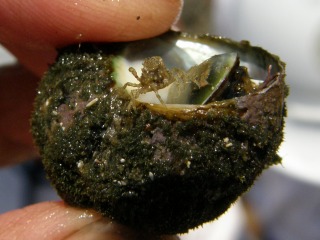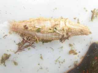 ヒザラガイ、アメフラシの卵(黄色)、スガイ、カラマツガイ、マガキ、マツバガイ、キクノハナガイ、アメフラシ、