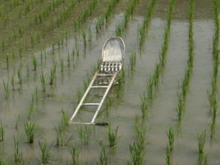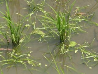 【中】水田にウリカワという雑草が茂っていました。