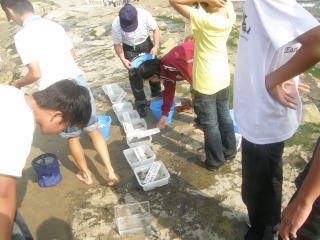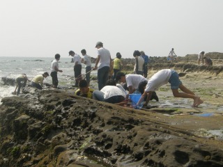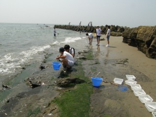 お昼の休憩後、磯の観察です。