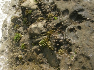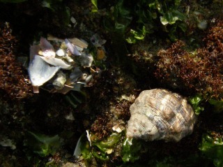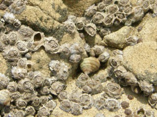 【右】イワフジツボとタマキビ(巻貝)