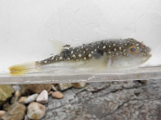 【左】何か動いている         【中】猛毒のクサフグ、食べなければ大丈夫         【右】この魚なんだろう