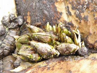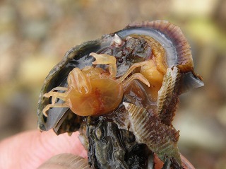 【左】貝殻から出たヤドカリ             【中】カメノテ            【右】クロフジツボ