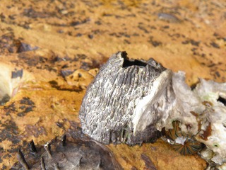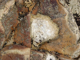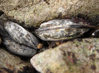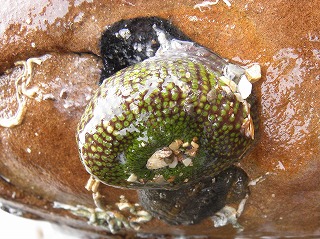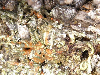【左】イワフジツボとマガキ           【中】アラレタマキビ           【右】ヒザラガイ